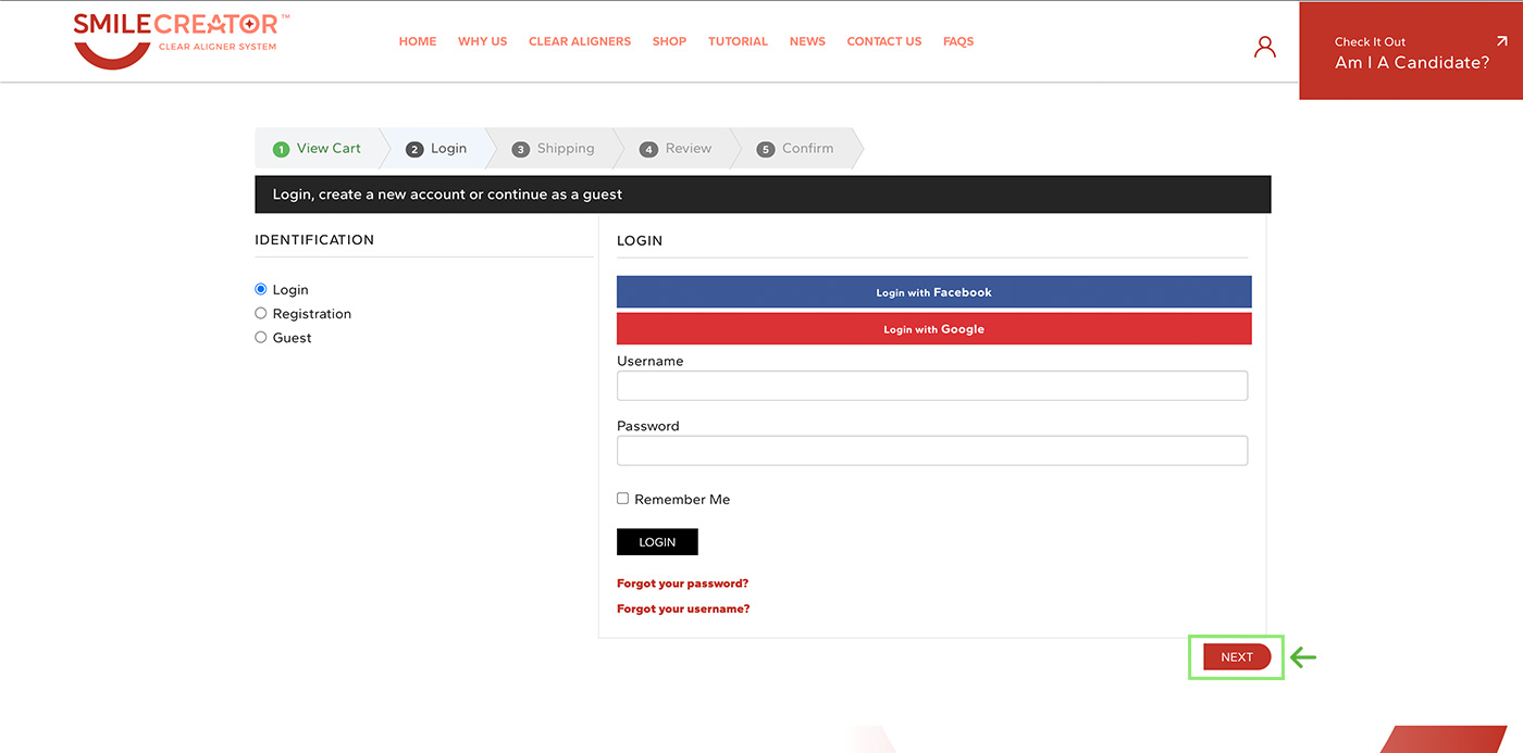 If you're a returning customer, please login using your email and password. Otherwise, please register by completing the registration form. Then click the "Next" button to continue.
