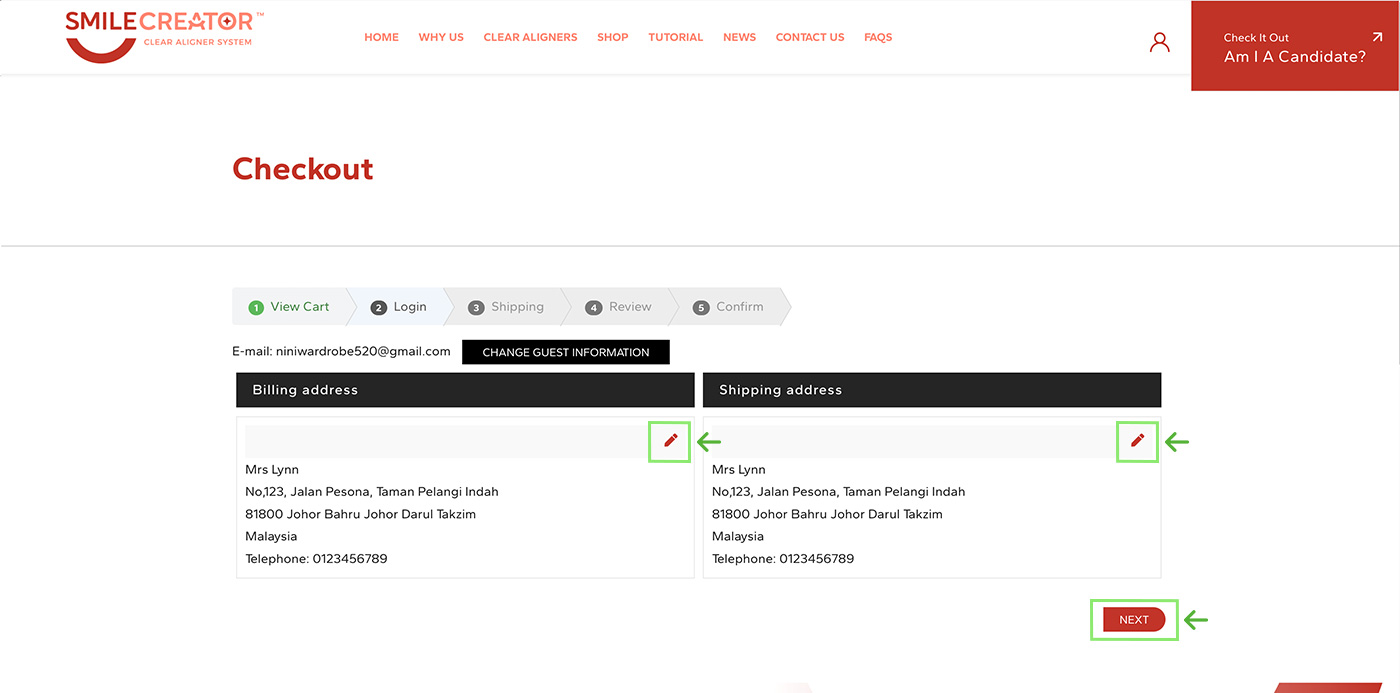 Choose your billing/shipping address. You can also edit them with the pen icon. Click "Next" button to proceed once you're done.