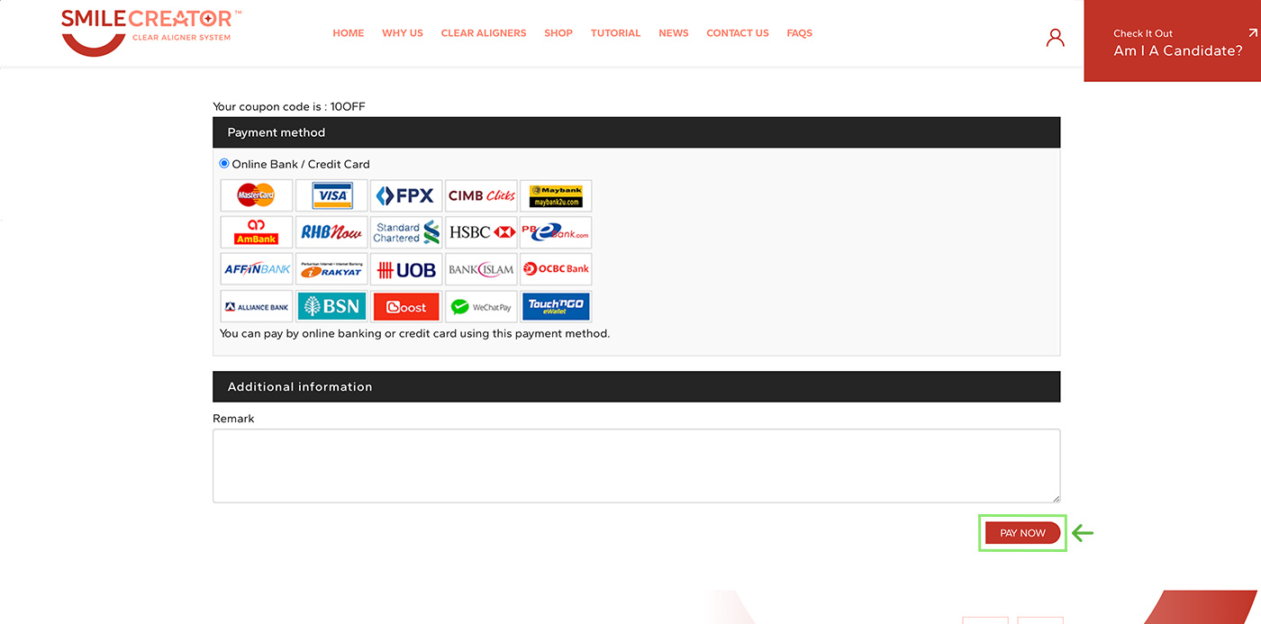 Confirm your order and click the "PAY NOW" button to end your purchase. You can enter the coupon number if available.